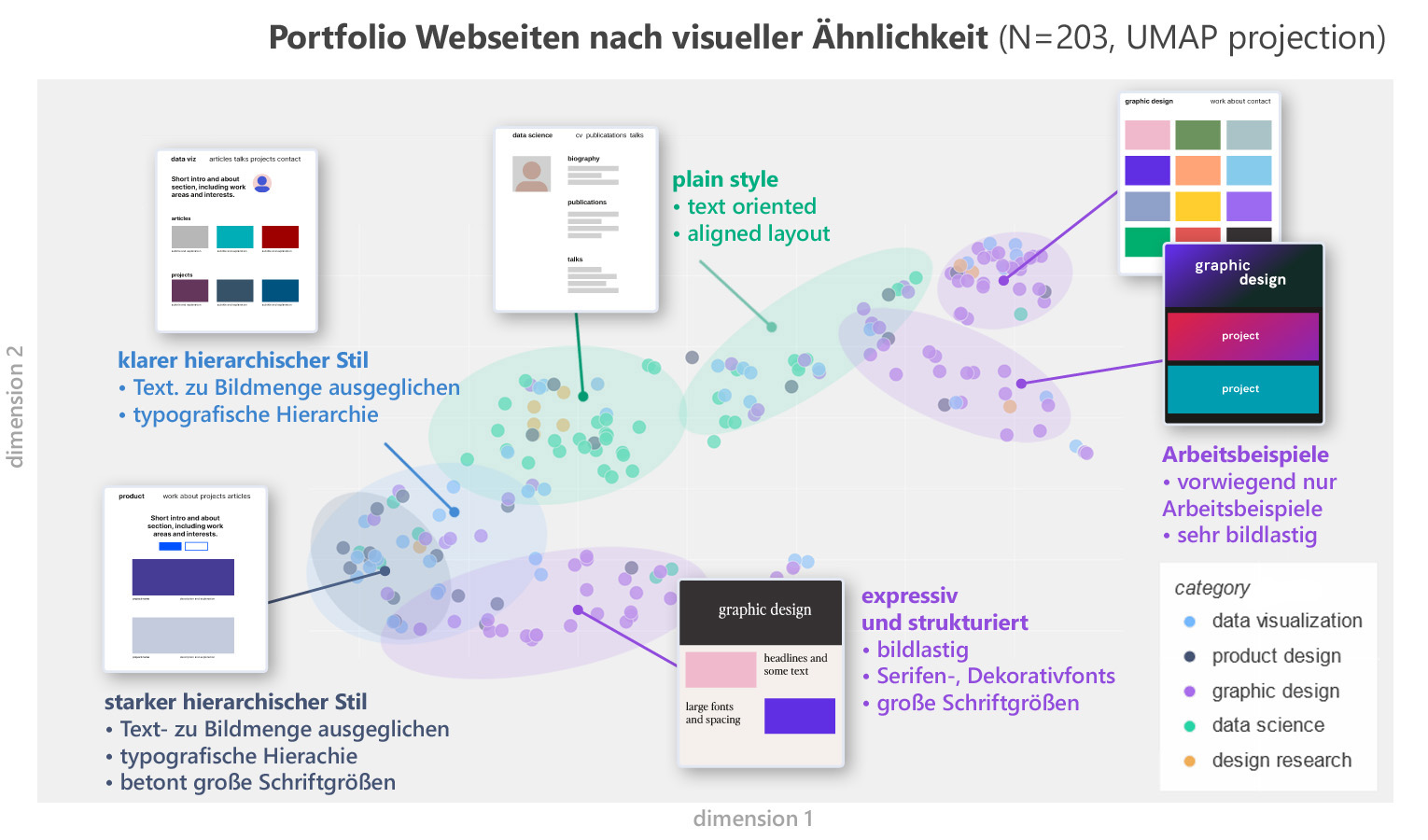 Die Kommunikationsziele und Erkenntnisse aus der visuellen Analyse dienen als constraints (Rahmenbedingungen) für die Gestaltung. Die visuelle Exploration hilft vorallem Missverständnisse und unpassende Ansätze von vornherein zu vermeiden.